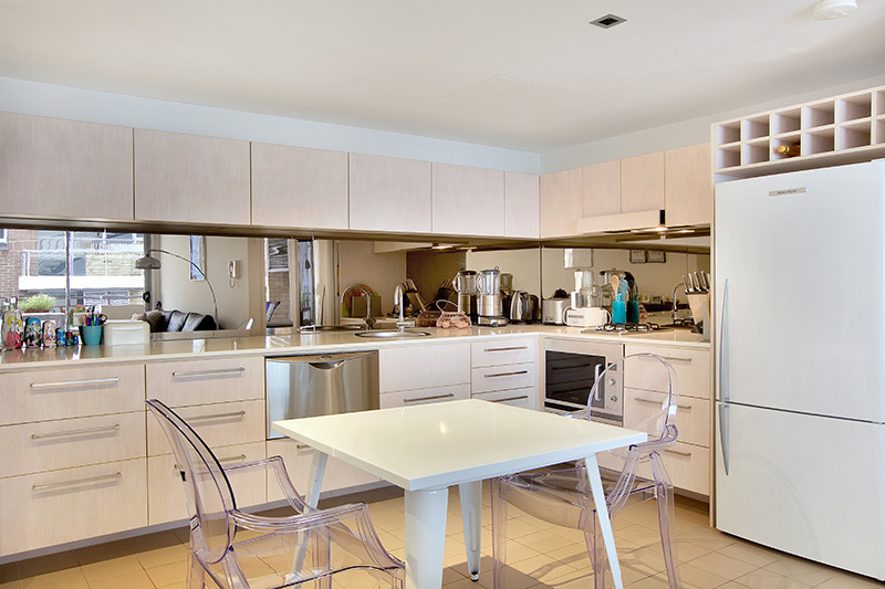 * Superb well equipped designer kitchen with gas cooking, dishwasher and mirror splash backs