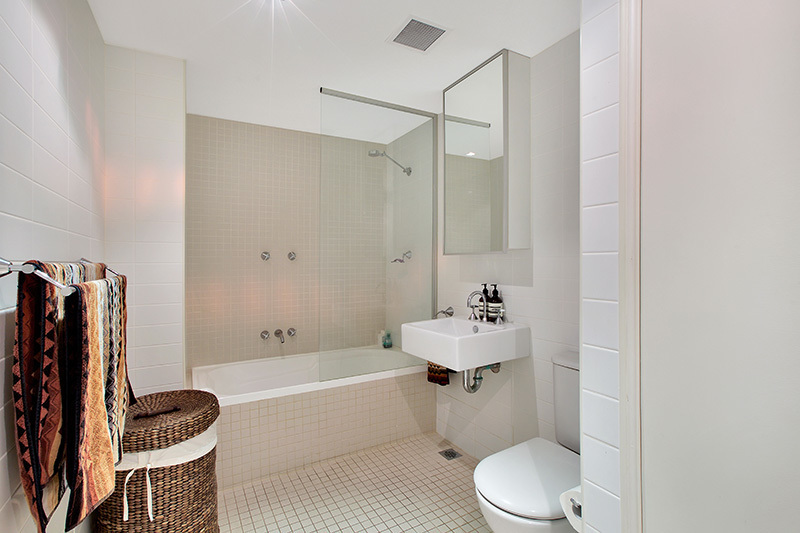 * Modern bathroom with shower over bath also provides a clever integrated laundry