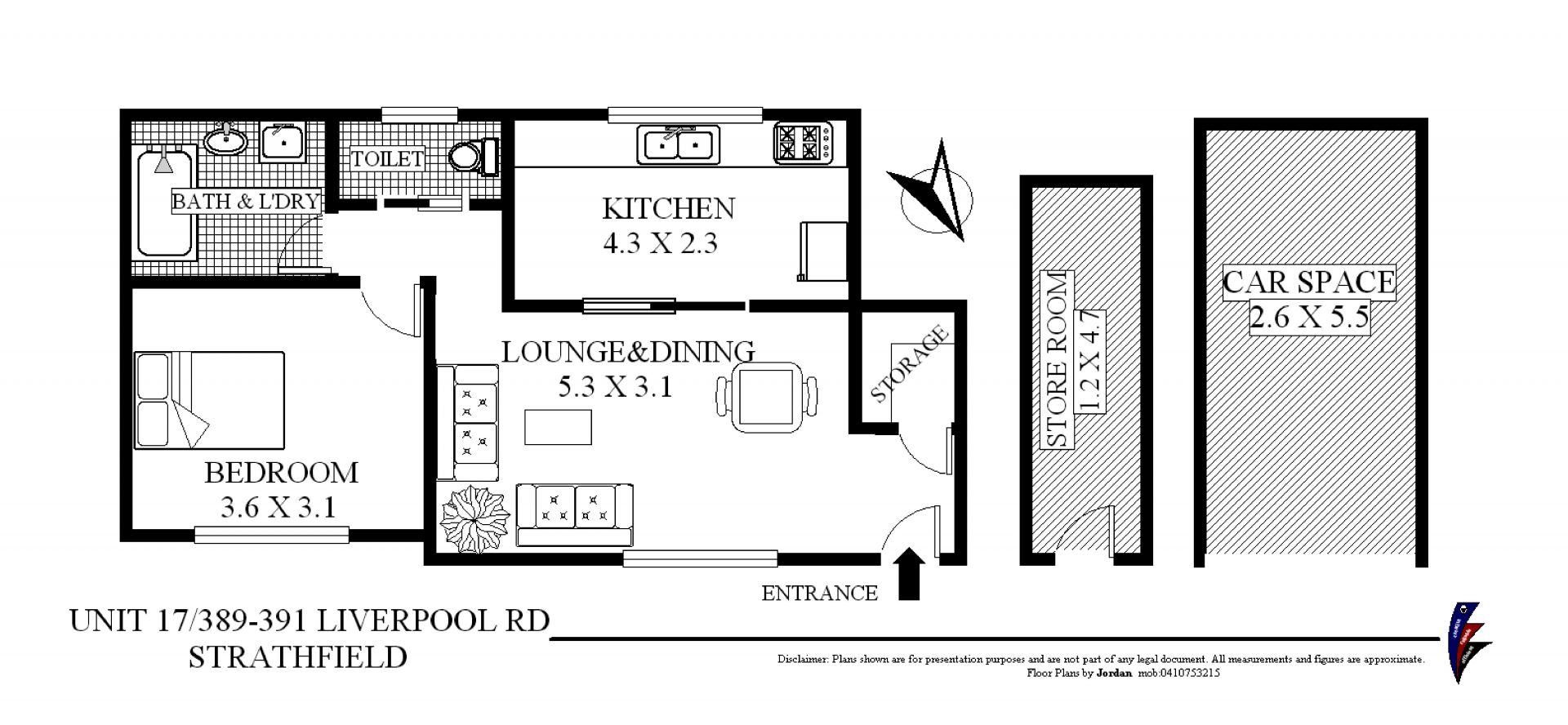 • Internal 54 sqm + car space and storage room, total: 72 sqm approx.
