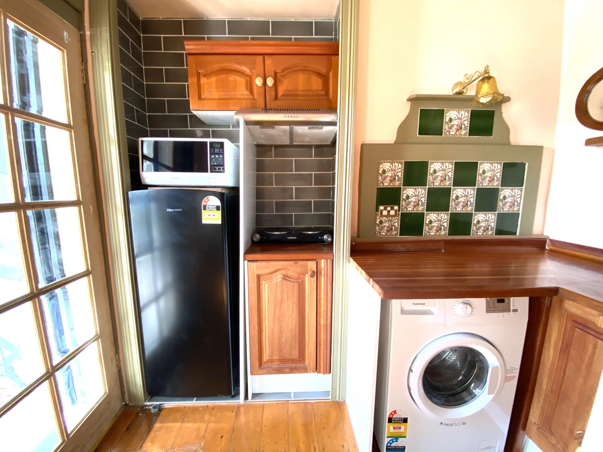* Timber kitchen includes hot plates, fridge, microwave oven and also incorporates the washing machine