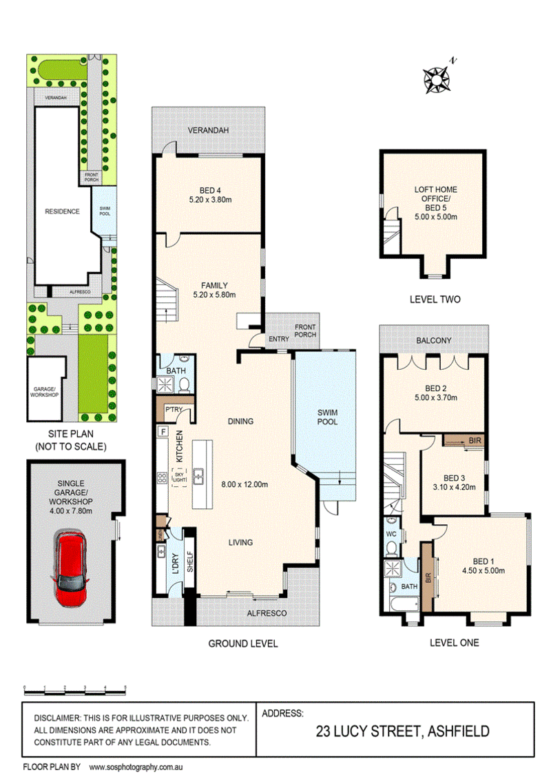 * Four double bedrooms plus a loft retreat, home office or 5th bedroom. The main is a light-filled, sublime bedroom with a large built-in robe and is zoned on the second level, upstairs to the rear