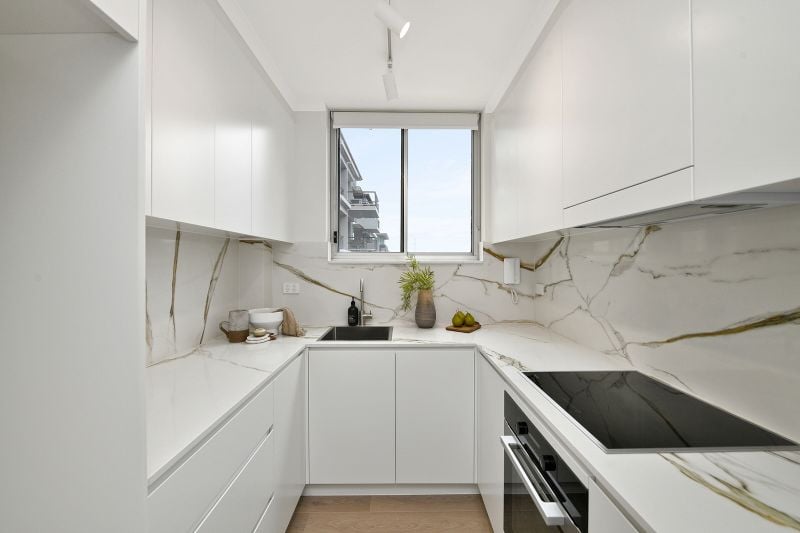 • The designer kitchen, complete with Caesarstone marble look finishes, integrated dishwasher, premium Miele appliances and sleek cabinetry with ample storage is as functional as it is stylish