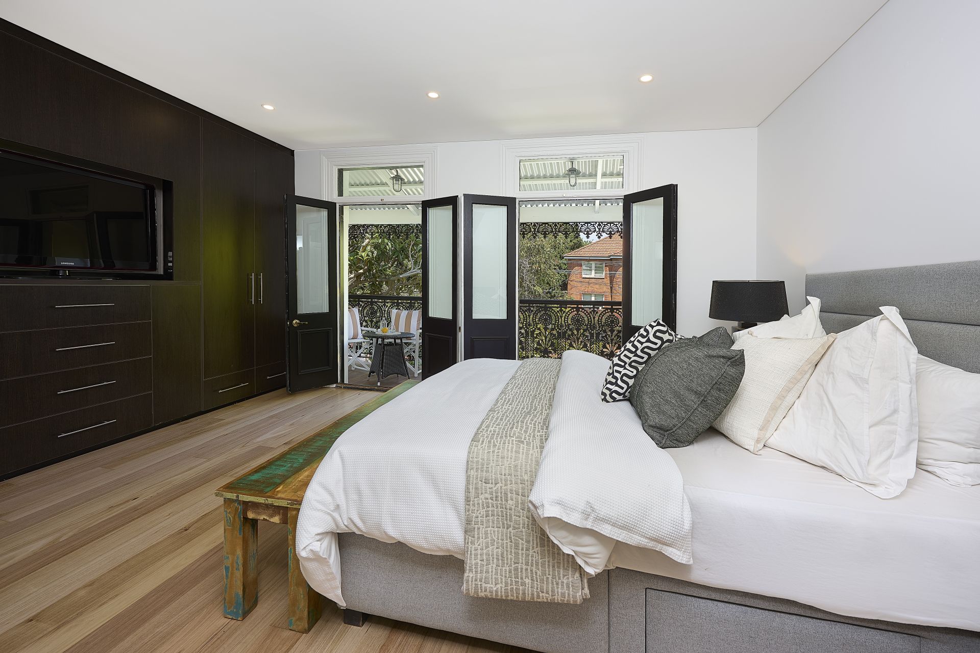 Three bedrooms, the main opening onto its restored lace balcony, and two with oversized built-in robes