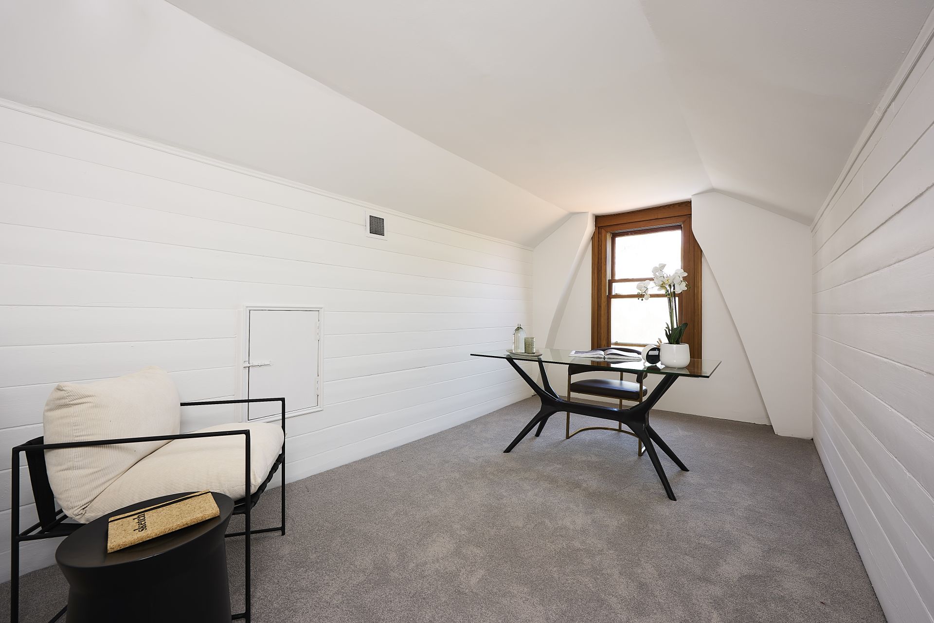 Fully-lined attic study with its original staircase and timberwork